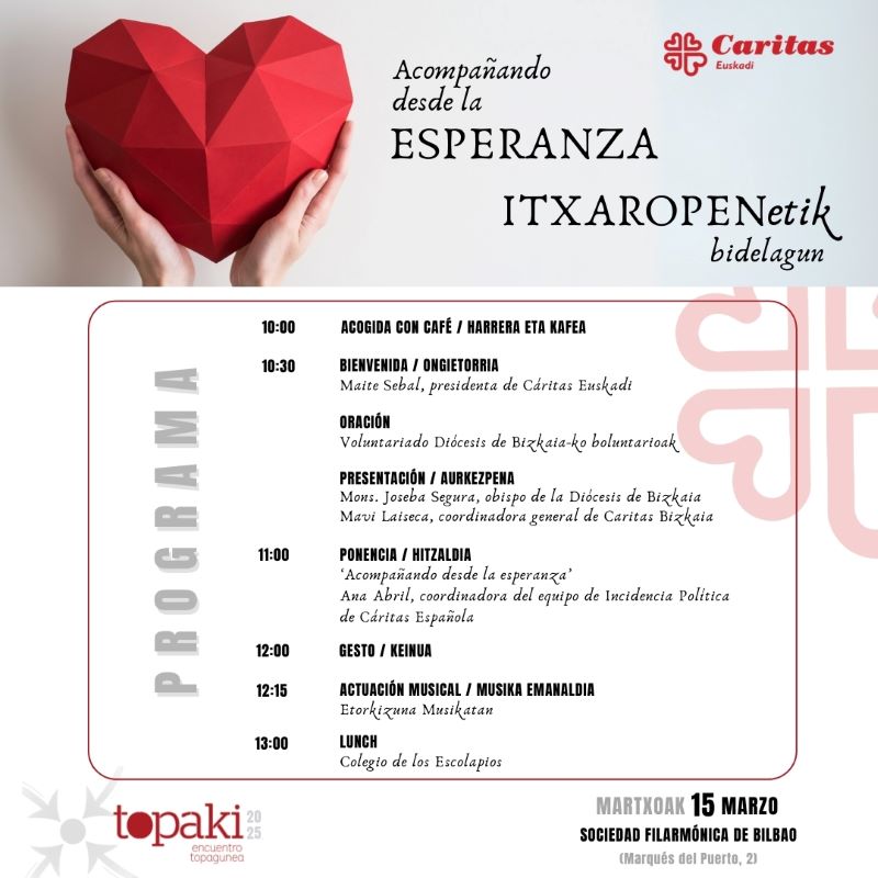 Ana Abril eragin politikorako Caritas Espainiako taldeko koordinatzaileak eskainiko dau berbaldi nagusia: “Itxaropenetik lagun eginez”.