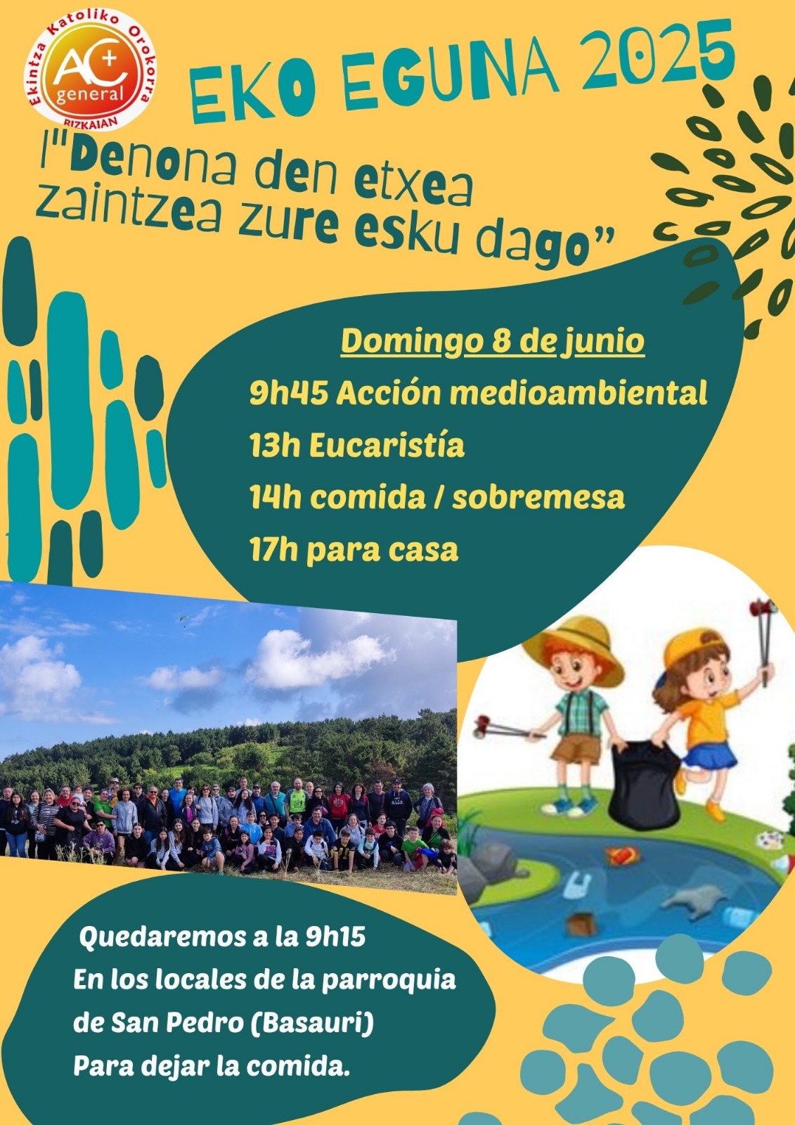 Ondoren, Mendekosteko Eukaristian alkartuko dira Laikoen Apostolutzaren eta Ekintza Katolikoaren eguna Basauriko San Pedro Apostolua parrokiako alkarteagaz ospatzeko, Javi Garcia bertako moderatzaile eta euren kontsiliarioa buru dala. Parrokiako lokaletan egingo dan bazkariagaz emongo deutse amaiera jardunaldiari.