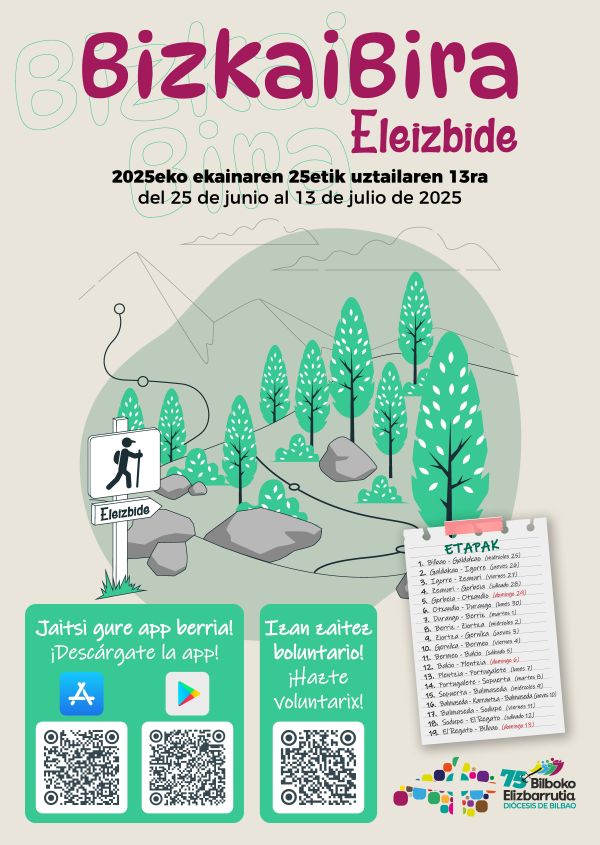 Gaurtik ekainaren 20ra arte, ANDROID eta IOSerako aplikazinoaz baliatuz, BizkaiBiran izena emoteko aukera dago. Jarduera berezi hau, beste hainbategaz batera, eleizbarrutiaren 75. urteurrena ospatzeko antolatu da.