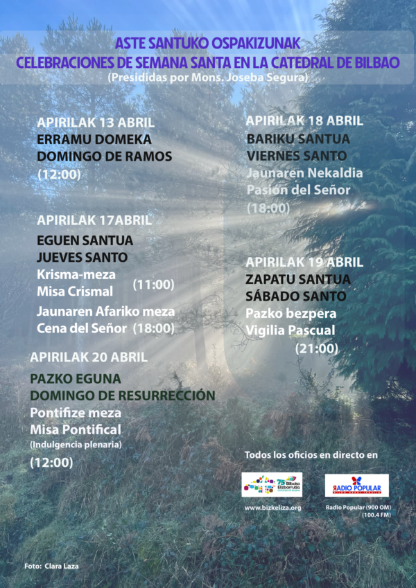 El día de Jueves Santo, 17 de abril, la Misa Crismal a las 11:00 h., así como la Cena del Señor, a las 18:00 h.